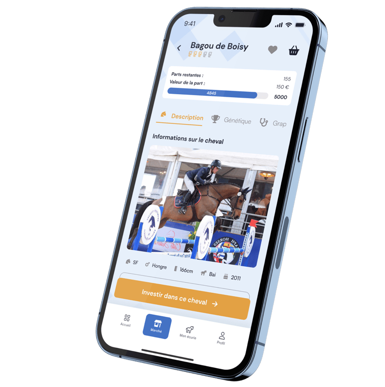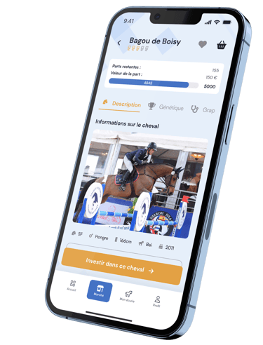 *Investir dans des projets sportifs équestres comporte des risques, notamment celui de ne pas recevoir les intérêts attendus, ou de perdre une partie ou la totalité du capital investi. N'investissez que l'argent dont vous n'avez pas besoin immédiatement, et diversifiez vos investissements.